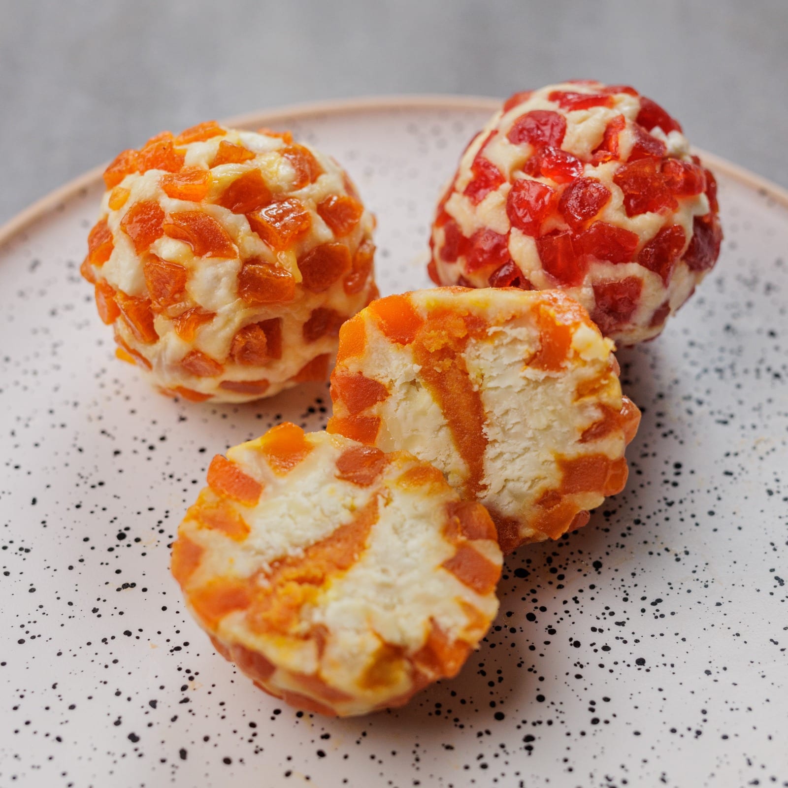Textura agradable y suave, ofrece una explosión de sabores tropicales. Cada bocado es una mezcla perfecta de la suavidad del Crottin de cabra con el exótico sabor del mango.