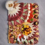 FIAMBRES: Jamón crudo Tipo Ibérico, Porchetta, Mortadela con Pistaccio, Spianatta, Milancito Italiano, Longaniza Calabresa. QUESOS: Gorgonzola, Queso Parmesano Suave, Queso Treccia ahumado, Quesos suaves de cabra, Queso con hierbas y con pimienta y tomates confitados. Pote con Boconccini di mozzarella di pasta hilada con tomates cherry, aceitunas y albahaca, Aceitunas negras y rellenas. Hojas frescas de albahaca. Cascaritas de naranja glaseadas Las fotos representan (tamaño): Foto 1: Express Foto 2: Mediana Foto3: Chica